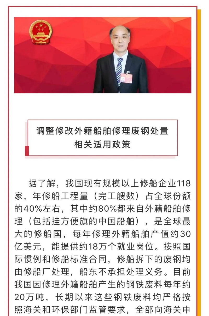 船舶看兩會(huì)|全國(guó)人大代表馬加友:修船廢鋼政策調(diào)整勢(shì)在必行!