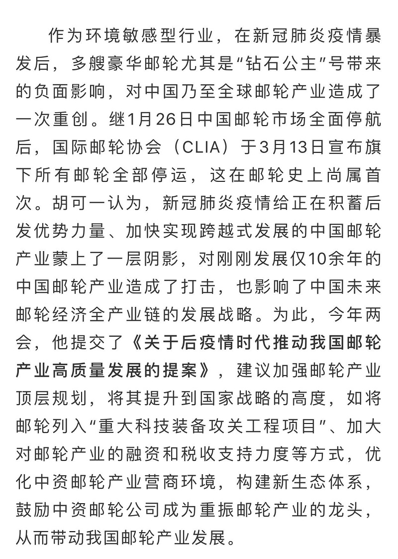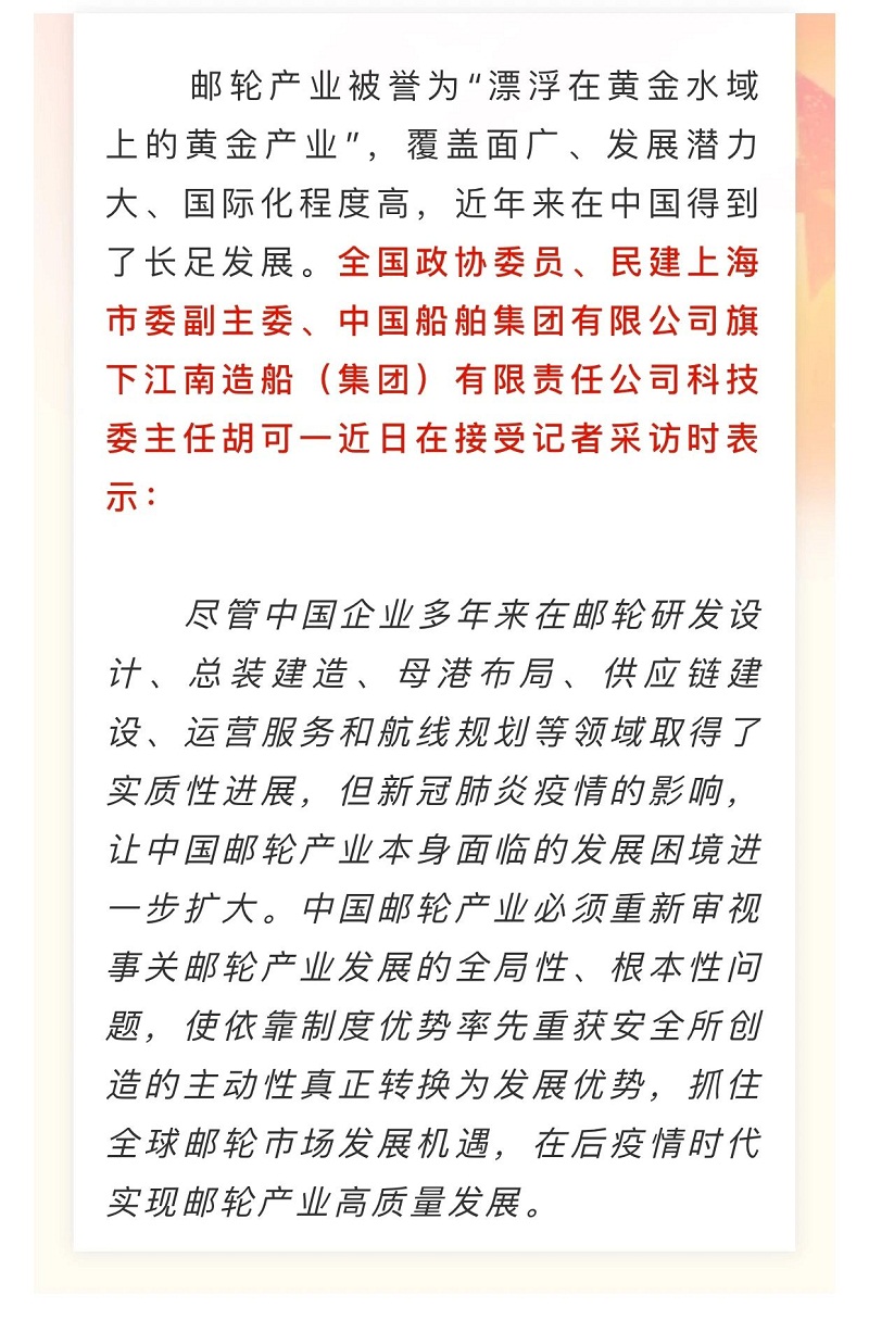 船舶看兩會(huì)| 全國(guó)政協(xié)委員胡可一:審視根本性問題,推動(dòng)郵輪業(yè)高質(zhì)量發(fā)展