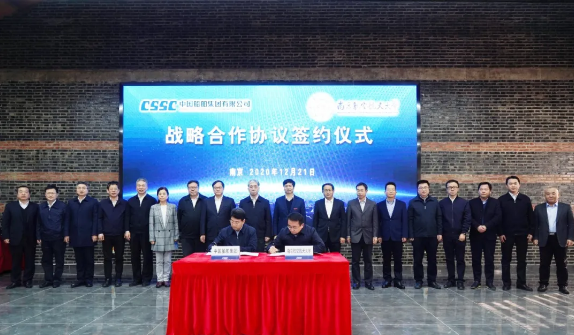 12月21日,中國船舶集團(tuán)有限公司在南京分別與南京航空航天大學(xué)、江蘇科技大學(xué)簽署戰(zhàn)略合作協(xié)議。中國船舶集團(tuán)黨組書記、董事長雷凡培,黨組副書記、總經(jīng)理楊金成,黨組成員、副總經(jīng)理錢建平、杜剛,南航黨委書記鄭永安,黨委副書記、校長單忠德,江科大黨委書記葛世倫,黨委副書記、校長周南平等領(lǐng)導(dǎo)出席簽約儀式。