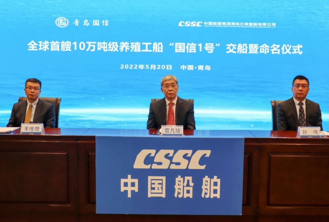 5月20日,中國船舶集團旗下青島北海造船有限公司為青島國信發(fā)展(集團)有限責任公司建造的全球首艘10萬噸級智慧漁業(yè)大型養(yǎng)殖工船“國信1號”交船命名儀式在青島舉行。中國船舶集團黨組書記、董事長雷凡培,黨組成員、副總經(jīng)理孫偉通過視頻出席儀式,山東省人民政府黨組成員、副省長凌文,青島市委副書記、市長趙豪志,中國海洋大學黨委副書記、校長于志剛,中國工程院院士麥康森等領(lǐng)導和嘉賓出席儀式。青島市副市長趙燕為新船命名。