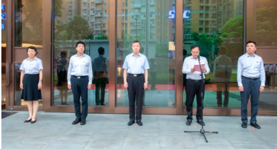 全體干部職工精神煥發(fā),以崇高的敬意,向國旗、向偉大的祖國致敬。
