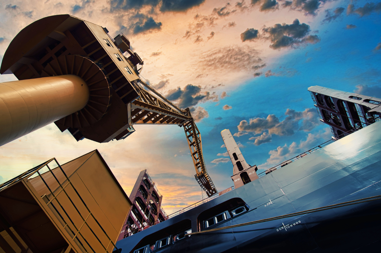 夕陽下觀看遠景的船廠,另有一番意境。