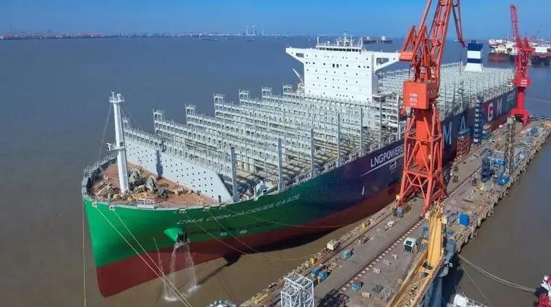 ????3月16日,中國船舶集團(tuán)所屬滬東中華建造的全球首艘23000箱液化天然氣(LNG)動力集裝箱船開啟了常規(guī)試航之旅。該超大型LNG動力集裝箱船總長400米,型寬61.3米,服務(wù)航速22節(jié),載重量近22萬噸,被業(yè)界形容為“綠巨人”;采用了一顆獨(dú)一無二的“綠色心臟”——一個18600立方米的MK Ⅲ薄膜式燃料艙,能滿足全球最嚴(yán)格排放要求。