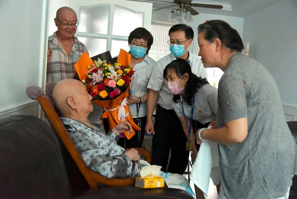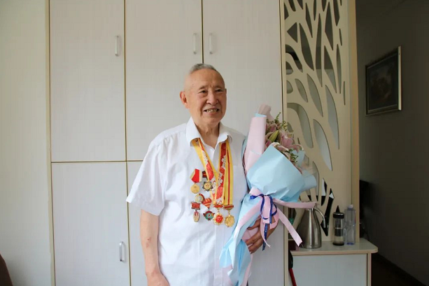 七院黨委書記、黨委副書記帶隊走訪慰問了健在的抗日戰爭時期及以前參加革命工作的李俠、邢家千、于占全、楊海川、肖元壽、宋振英等6位老同志,送去院黨委的祝福和慰問金,向他們表示感謝和崇高敬意。6位老同志年齡都在90歲以上,最年長的李俠老人已101歲。