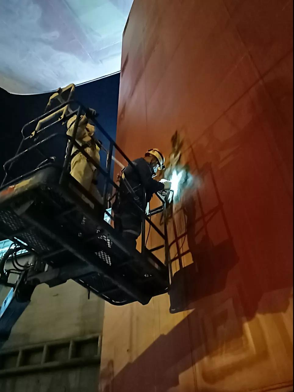 為保證出塢節(jié)點(diǎn),無(wú)損檢測(cè)人員在國(guó)慶節(jié)加班加點(diǎn)對(duì)舵葉封板焊縫磁粉檢測(cè)。