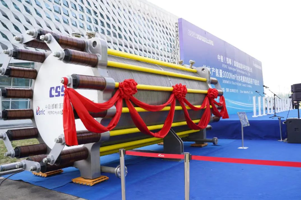 該裝備圍繞我國氫能高質(zhì)量發(fā)展重大需求,突破了大功率、高電密、寬負載、低電耗等多項前沿技術(shù),實現(xiàn)了單體產(chǎn)氫量由2000Nm3/h到3000Nm3/h的跨越,運行電流密度提升17%,槽體重量降低13%,制氫系統(tǒng)具備30%-110%的動態(tài)調(diào)節(jié)能力,能耗達到國標一級能效標準,可顯著提高單機產(chǎn)能、降低生產(chǎn)投入和運行成本,為大規(guī)模綠氫制取提供了創(chuàng)新型解決方案。