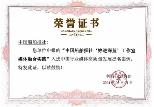 中國船舶報社“婷進(jìn)深藍(lán)”工作室,媒體融合實(shí)踐獲評中國行業(yè)媒體高質(zhì)量發(fā)展提名案例。