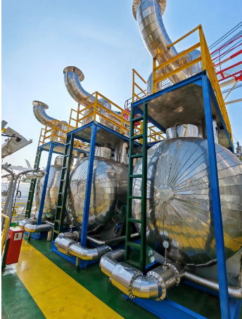 今年5月,七〇四所項(xiàng)目團(tuán)隊(duì)陸續(xù)完成了除氧撬塊、超濾撬塊、反滲透撬塊、換熱撬塊等設(shè)備的研制交付,隨即轉(zhuǎn)入現(xiàn)場安裝調(diào)試。面對設(shè)備安裝和海上試航中遇到的問題,團(tuán)隊(duì)成員群策群力、攻堅(jiān)克難,展現(xiàn)了專業(yè)、職業(yè)和敬業(yè)的精神,為“熱采一號”的成功交付貢獻(xiàn)了中國船舶人的擔(dān)當(dāng)和力量,獲得了船東的高度贊揚(yáng)。