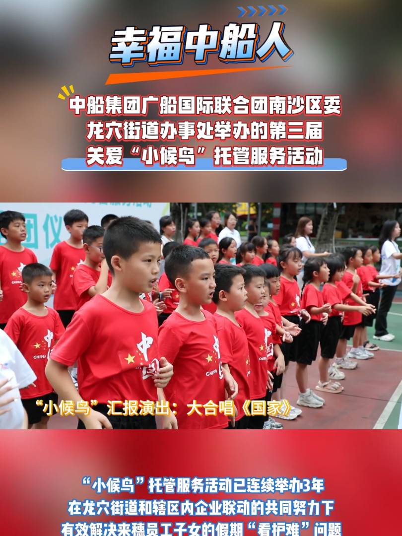 廣船國際“小候鳥”托管服務活動已連續舉辦3年,切實有效解決了來穗員工子女的假期“看護難”問題,提高員工扎根南沙、逐夢南沙的歸屬感與幸福感,是廣船國際聚焦“幸福中船人”目標的生動實踐、“我為群眾辦實事”及“六船同心”黨建品牌“民生號”建設的重要內容。