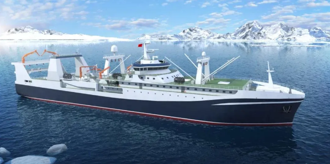 由七〇一所武船院設(shè)計(jì)的該系列南極磷蝦捕撈加工船排水量近2萬(wàn)噸,采用先進(jìn)的連續(xù)捕撈系統(tǒng)及現(xiàn)代化生產(chǎn)流水線,是我國(guó)目前已啟動(dòng)最大最先進(jìn)的南極磷蝦捕撈加工船,建成后將填補(bǔ)我國(guó)在南極磷蝦高端漁船設(shè)計(jì)領(lǐng)域的空白,為我國(guó)開發(fā)南極磷蝦產(chǎn)品提供裝備保障。