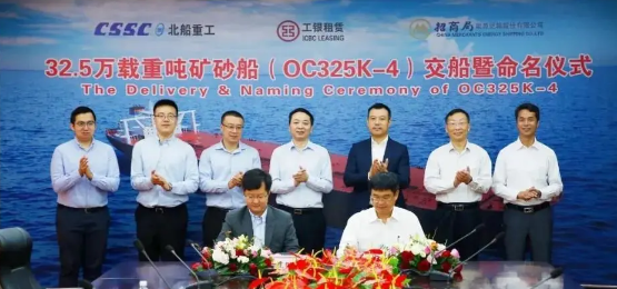 武船集團(tuán)北船重工為工銀租賃和招商輪船建造的32.5萬(wàn)噸礦砂船4號(hào)船“ORE CHONGQING”號(hào)命名暨交船儀式在3號(hào)碼頭舉行。