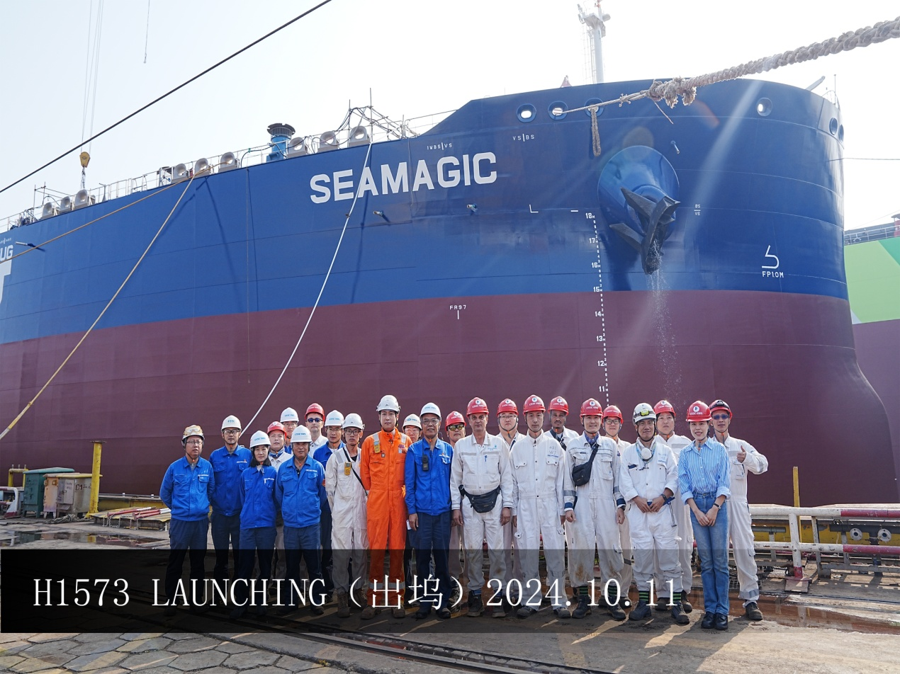 近日,中國船舶集團外高橋造船為NYK公司建造的18萬噸雙燃料散貨船H1462船和為Thenamaris公司建造的11.4萬噸阿芙拉型成品油船H1573船出塢。