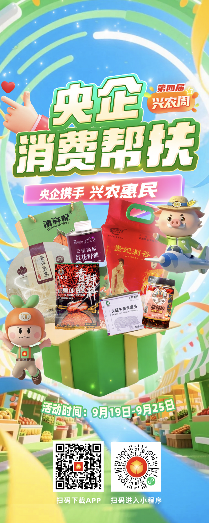 本屆“央企消費(fèi)幫扶興農(nóng)周”活動(dòng)時(shí)間為9月19日~9月25日,發(fā)布了央企消費(fèi)幫扶電商平臺(tái)助農(nóng)大數(shù)據(jù),線上開展限時(shí)秒殺、拼團(tuán)采購、跨店滿減等促銷活動(dòng),線下舉辦特色農(nóng)產(chǎn)品展銷會(huì)、創(chuàng)辦非遺等特色主題展,再搭配包括現(xiàn)場(chǎng)簽約、展位打卡等在內(nèi)的活動(dòng),共同打造了一場(chǎng)“能看、能嘗、能買、能玩”的“興農(nóng)”盛宴。